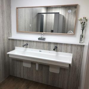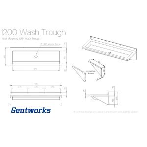 Currently out of stock – More are going through production and should be available 20th December. Gentworks 1200 GRP Wash Trough wall hung with Tap Deck Manufactured in Glass Fibre Reinforced Polyester Resin (the same material as often used for boat hulls), this wash trough has a smooth gel-coat finish that is resistant to staining and damage. Its smooth design enables easy cleaning without the requirement for strong cleaning products. The Gentworks GRP wash troughs are ideal for use in washrooms where aesthetics are important. They are particularly popular in the education sector and for modular buildings. • Tap ledge for deck mounted taps Tap Holes: Now supplied without tap holes, these can easily be drilled on site as part of the installation. Dimension: Pack Includes: