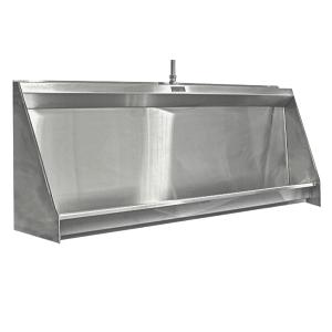 You are not purchasing the product, this is a request for a quote only. Delivery charges apply based on location. Not available to order online, please complete the required size and options above and include the delivery location when you check out and we'll get back to you with a quote. Wall Hung Stainless Steel Urinal available in custom widths of 600mm to 2900mm. The only dimensions you need provide us with is the overall width and the waste hand location that you require. |