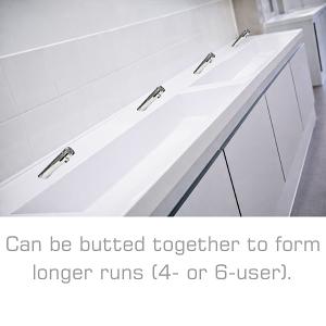 The wash trough is space efficient, easy to clean and more hardwearing than conventional vanity units that incorporate basins. This model is intended for installation onto an underframe or vanity-type cabinet (not included) to ensure proper support and conceal unsightly pipework and plumbing fittings from view.