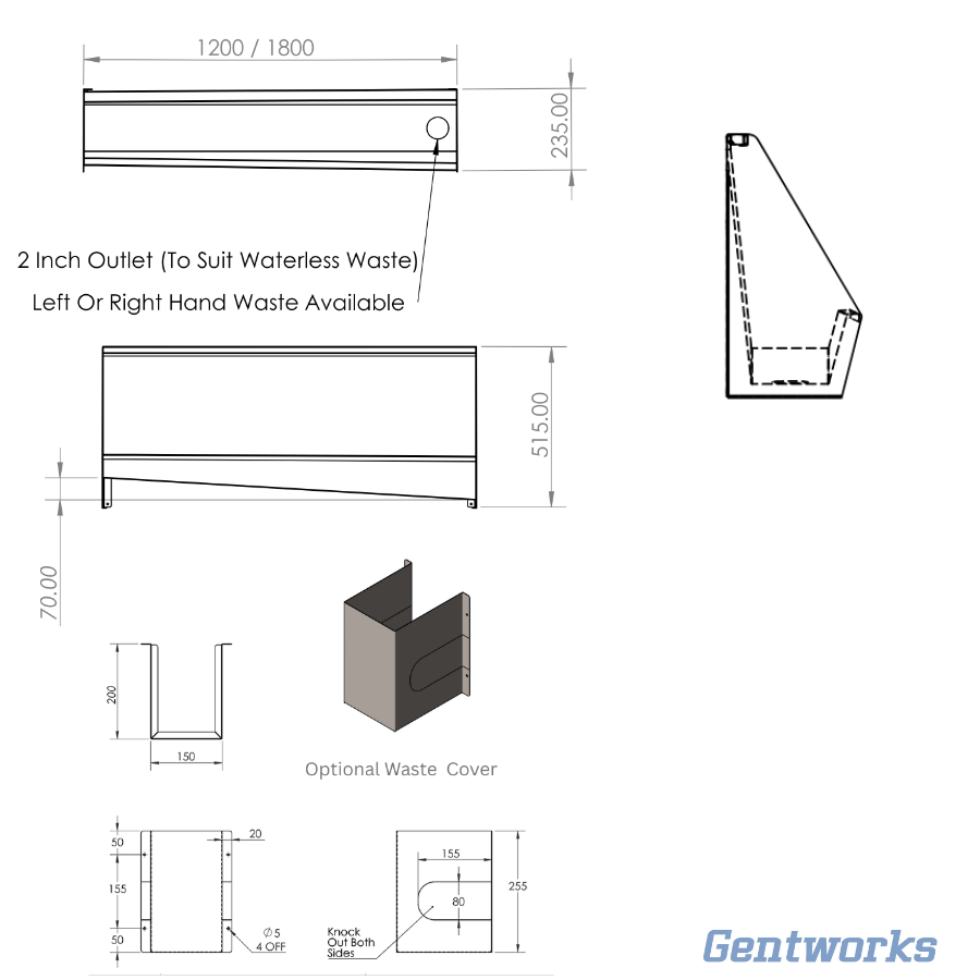 GW6 Tabernas Stainless Steel Waterless Urinal Trough Ideal for commercial and public washrooms, this waterless trough increases user capacity while eliminating water usage. Fitted with the GW6 dual-valve waterless waste, it delivers reliable odour control and low-maintenance operation, with a 4-6 months replaceable core. Waste fittings are included for both vertical and horizontal pipe installations. Add the optional waste outlet cover for enhanced vandal resistance. Key Benefits / Features: