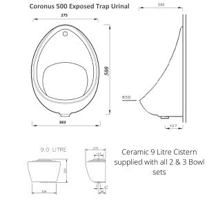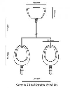 2 Urinal Set - Coronus 500: Exposed Trap, Flushpipes & China Cistern