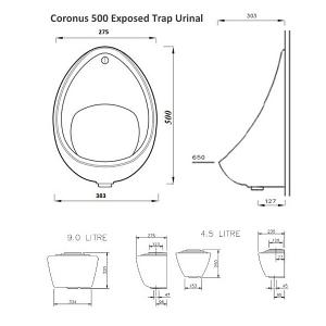 Product Data Sheet Coronus 500mm Exposed Trap Urinal
