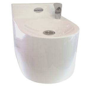 This wall mounted drinking fountain is constructed from Glass Fibre Reinforced Polyester Resin, the same tough material often used for boat hulls. The smooth rounded design eliminates sharp corners which could cause injury, while the gel-coat finish is resistant to staining and damage as is easy to clean without the need for strong cleaning products. The drinking fountain is also corrosion resistant making it more suitable than stainless steel for chlorine or salt water environments. It can be installed at adult or junior height and features a 255mm high under-shroud and baseplate to conceal the water supply and waste connections to deter vandalism. Each drinking fountain is supplied with a 32mm flush grated waste fitting and a chrome plated shielded bubbler (or swan-neck bottle filler) complete with a self-closing push button valve. The valve incorporates a flow adjuster and strainer and is supplied with a water inlet fitting to suit 15mm diameter pipework. ![]() Depth: 350mm (projection from wall)