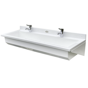Currently out of stock – More are going through production and should be available 20th December. Gentworks 1200 GRP Wash Trough wall hung with Tap Deck Manufactured in Glass Fibre Reinforced Polyester Resin (the same material as often used for boat hulls), this wash trough has a smooth gel-coat finish that is resistant to staining and damage. Its smooth design enables easy cleaning without the requirement for strong cleaning products. The Gentworks GRP wash troughs are ideal for use in washrooms where aesthetics are important. They are particularly popular in the education sector and for modular buildings. • Tap ledge for deck mounted taps Tap Holes: Now supplied without tap holes, these can easily be drilled on site as part of the installation. Dimension: Pack Includes: