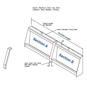 You are not purchasing the product, this is a request for a quote only. Delivery charges apply based on location. Not available to order online, please complete the required sizes and options above and include the delivery location when you check out and we'll get back to you with a quote. Wall Hung Sectional Stainless Steel Urinal With Joint Cover Trim, 2x Cisterns and 2x wastes. Each section is manufactured as a separate urinal with its own waste fitting and cistern, and the only tool required is the 3mm Allen Key. The only dimensions you need provide us with are the overall widths that you require, we calculate the allowances requires for the joint cover trim. |