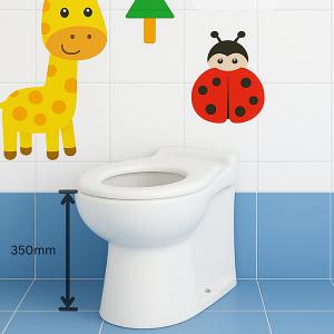 Junior School Height Back to Wall WC Pan Designed especially for young children in nurseries and primary schools, this toilet pan has a low 350mm rim height and is made from vitreous china. Choose from two seat options to suit your needs – a ring seat only or a ring seat with cover. These back-to-the-wall 350mm junior toilets are designed to have the cistern hidden behind a wall or panel, keeping all pipework neatly out of sight and improving both hygiene and safety. When refurbishing an existing washroom, it is usually a straightforward job for professional installers to create accessible voids to conceal the services. We offer a slimline 150mm deep concealed flushing cistern ideal for these installations, along with a choice of push buttons, including large and palm-operated options. Product Specification |