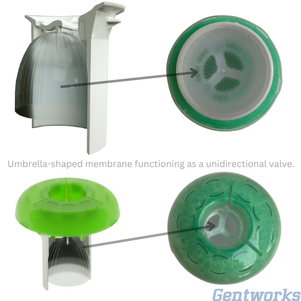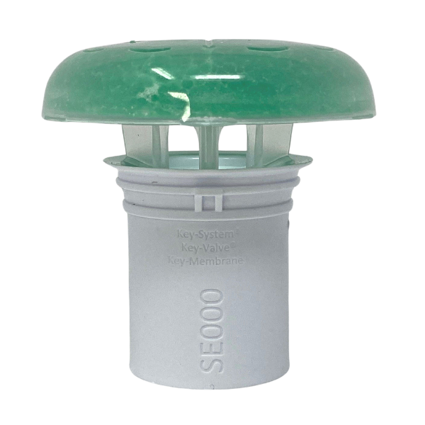 The Falcon High Performance Key Valve SE000 for waterless urinals features an innovative bell-valve design for significantly faster flow. A translucent umbrella membrane acts as a one-way valve, preventing odours and ensuring an airtight seal. Typical lifespan is 3–4 months, with an optional replacement extraction key available if the original is lost.