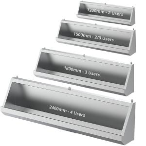 1200mm, 1500mm, and 1800mm urinals held in stock for quick delivery. The 2400mm versions are made to order at the factory, with a lead time of around 10-14 working days.