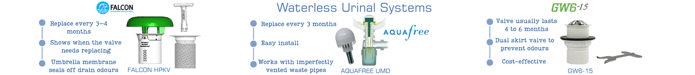 Gentworks can offer reliable waterless urinal solutions from Falcon, GW6 and others. We have over 20 years’ experience in waterless urinals and we’ve created a range of options to fit most budgets.